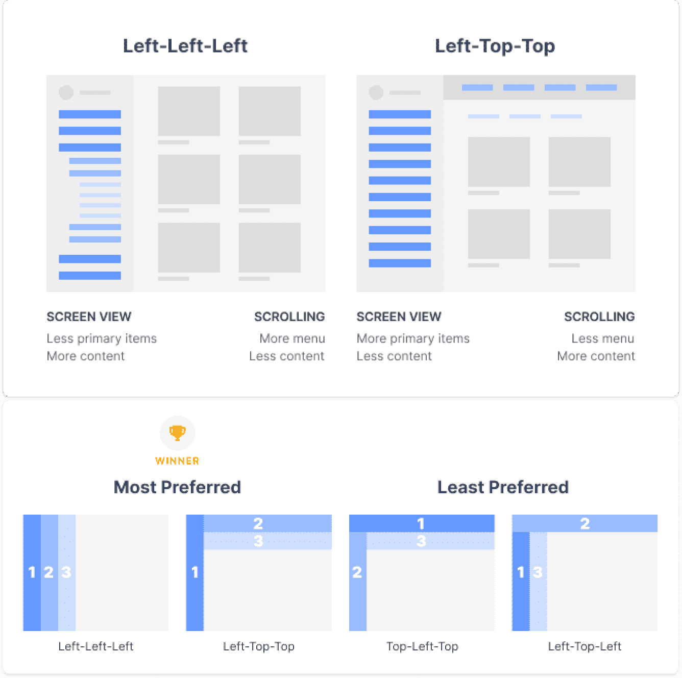 On task achievement when finding different elements through the navigation.